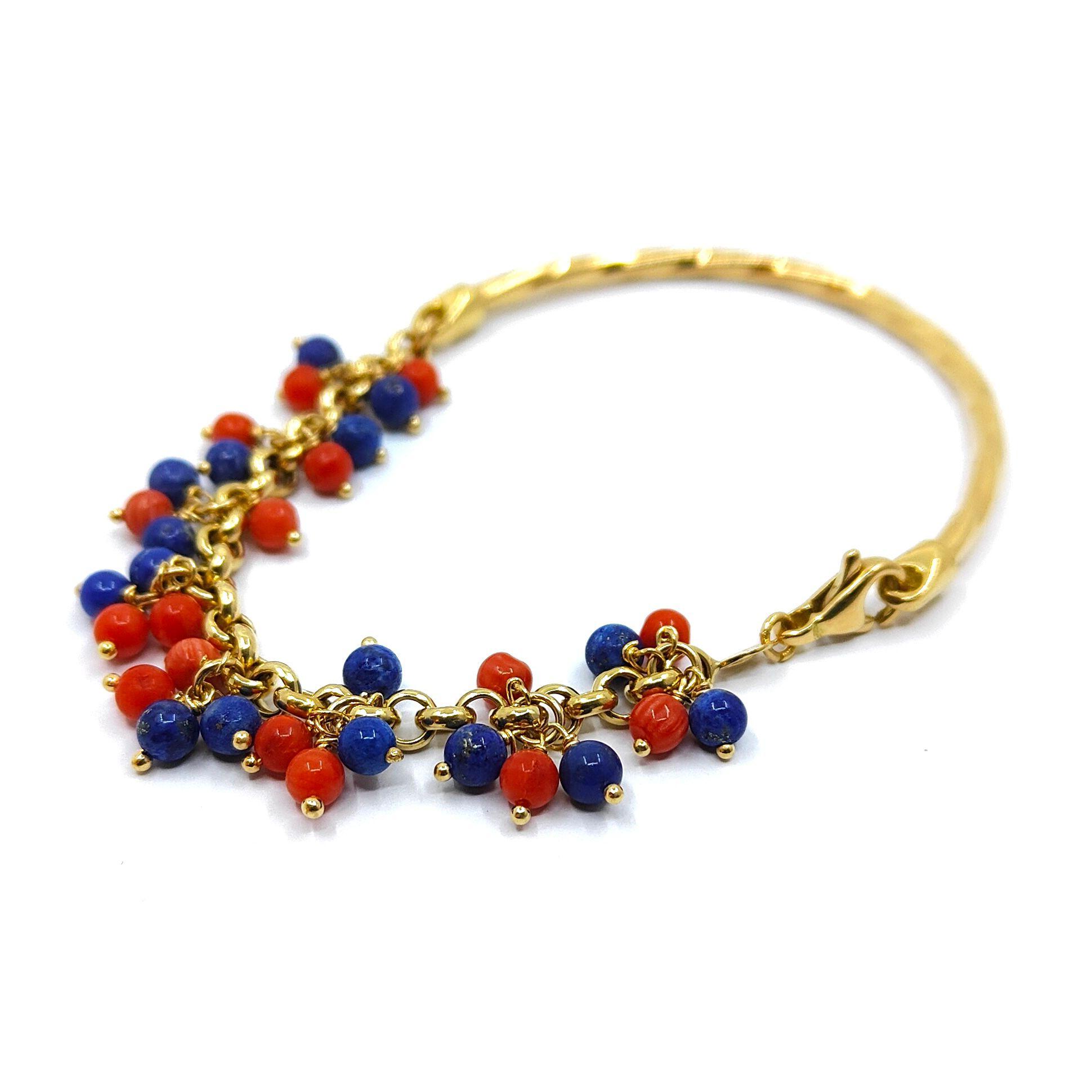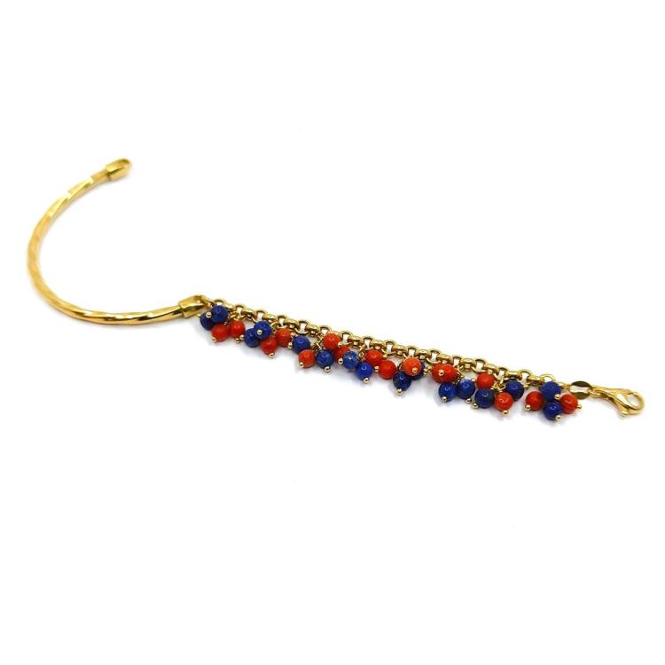 Bracelet Or Jaune 18k Corail & Lapis Lazuli