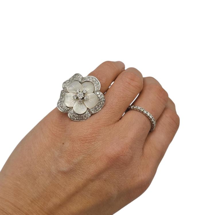 BAGUE FLEUR EN DIAMANTS ET NACRE EDOUARD NAHUM