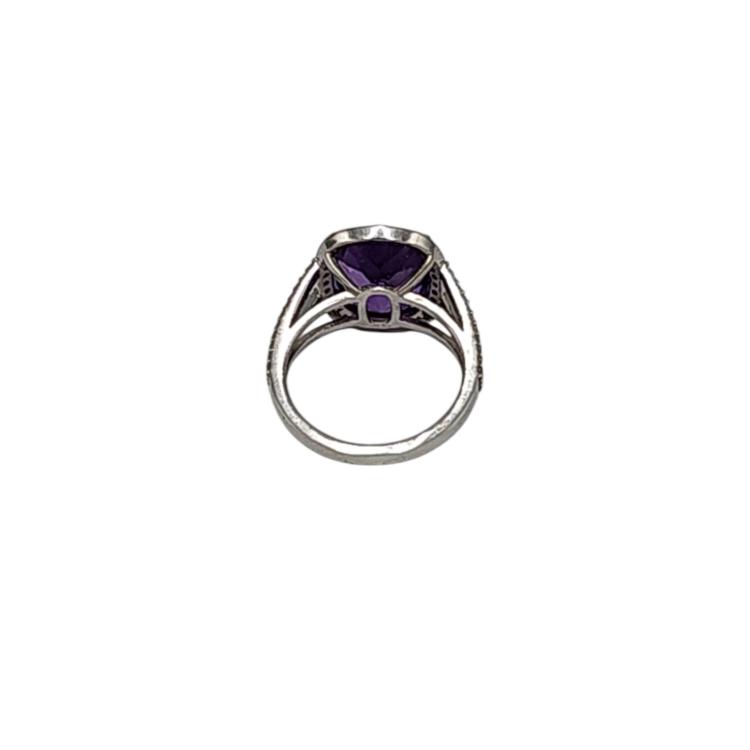 Bague Or Blanc 18 Ct Amethyste et Diamants