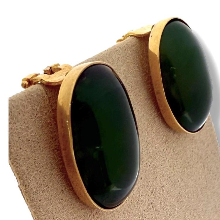 Référence Boucles D'Oreilles Clip Or Jaune 18Ct & Jade de Birmanie