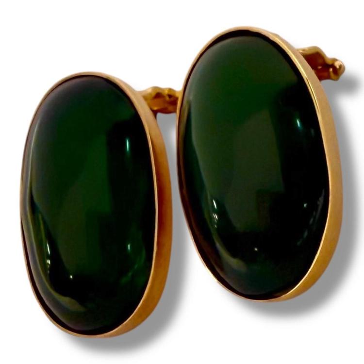 Boucles D'Oreilles Clip Or 18Ct & Jade de Birmanie