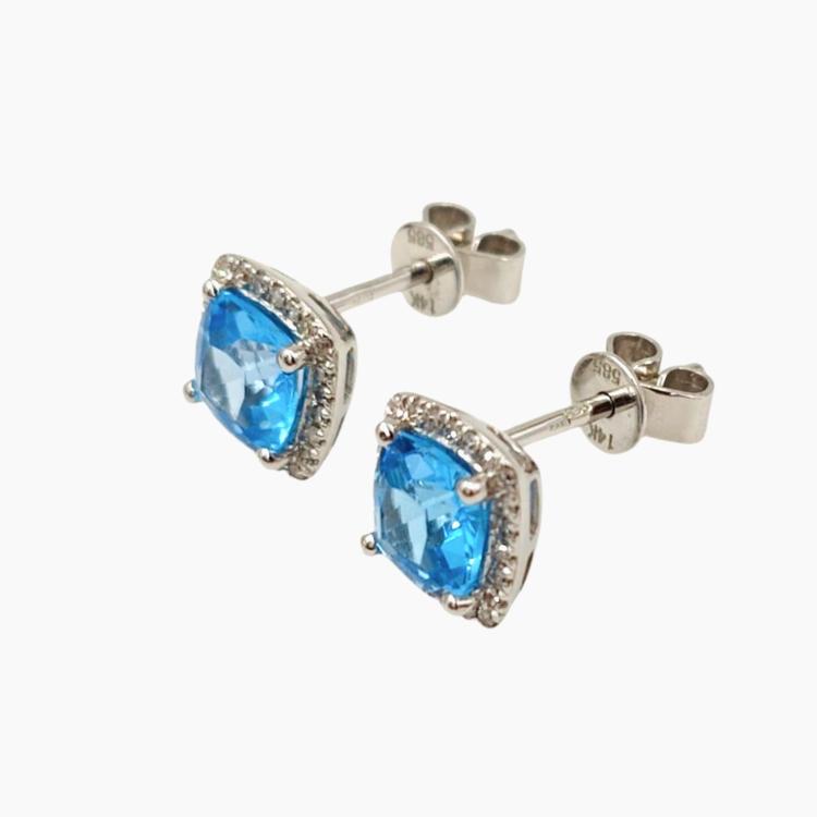 Boucles d'Oreilles Or 14Ct Topazes&Diamants
