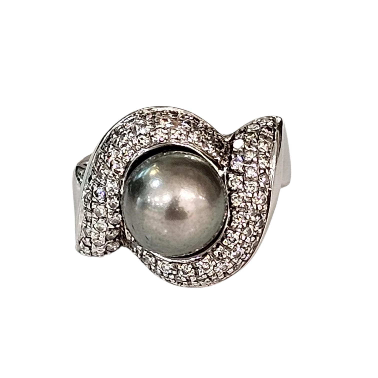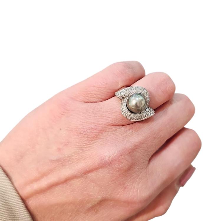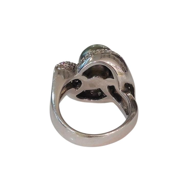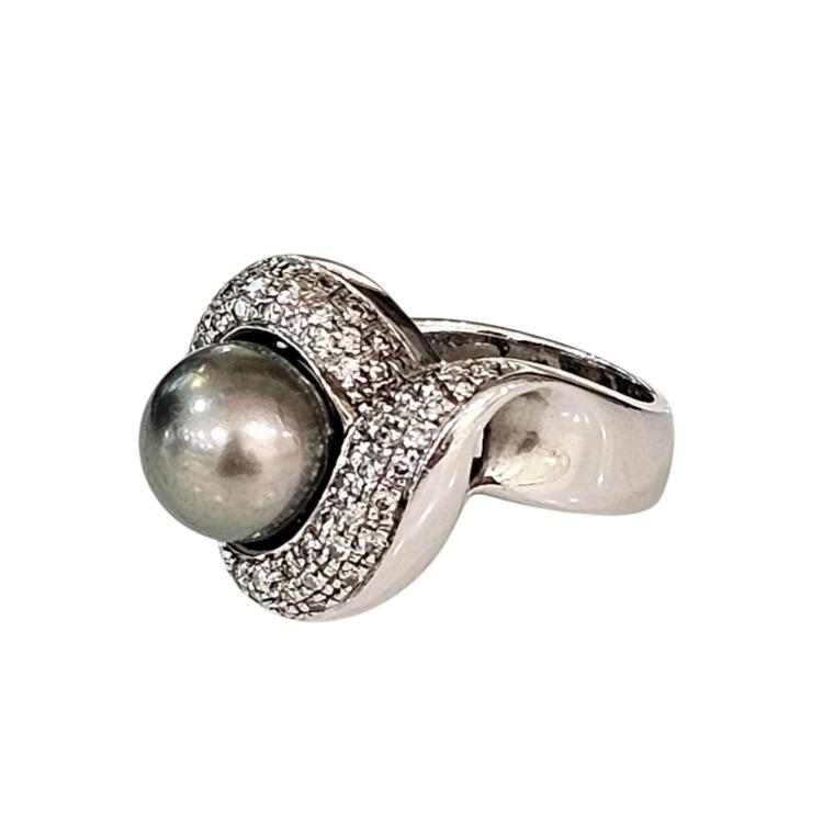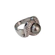 Bague Or Blanc 18 Ct Perle et Diamants