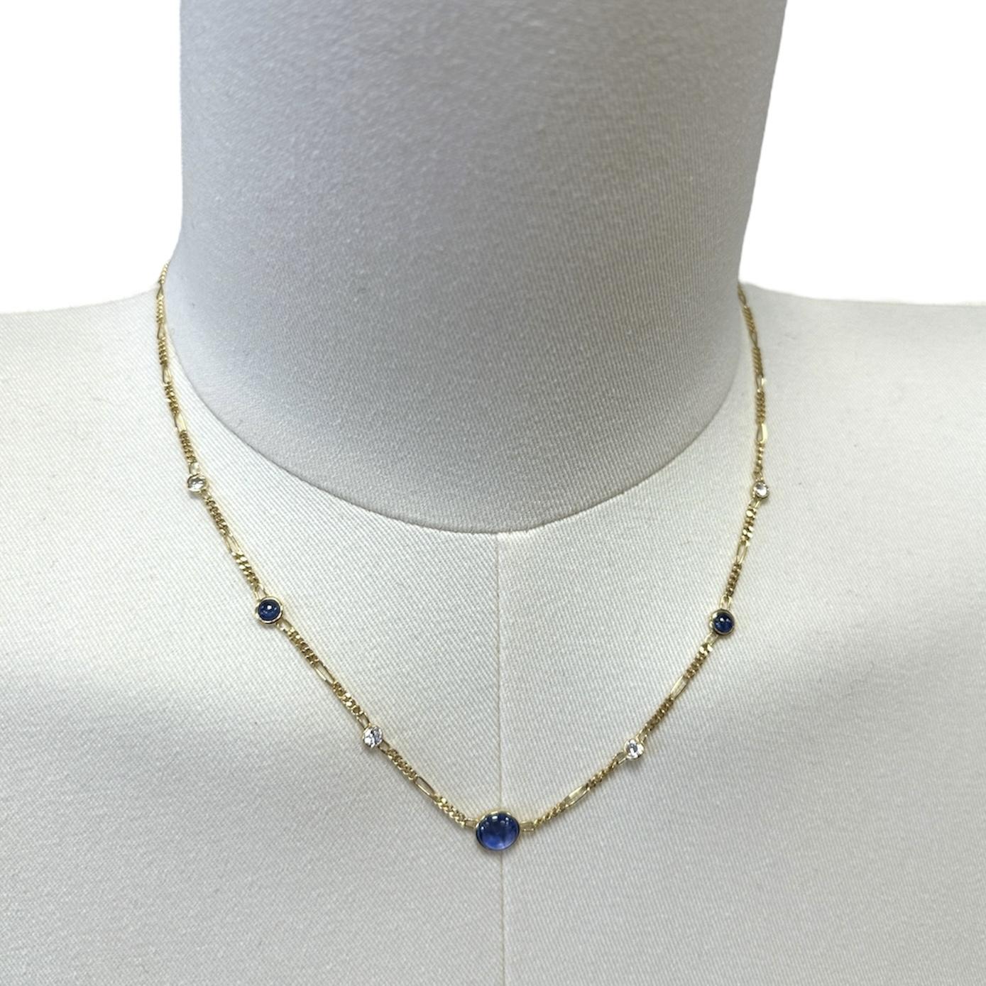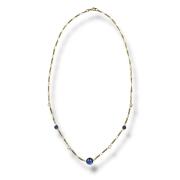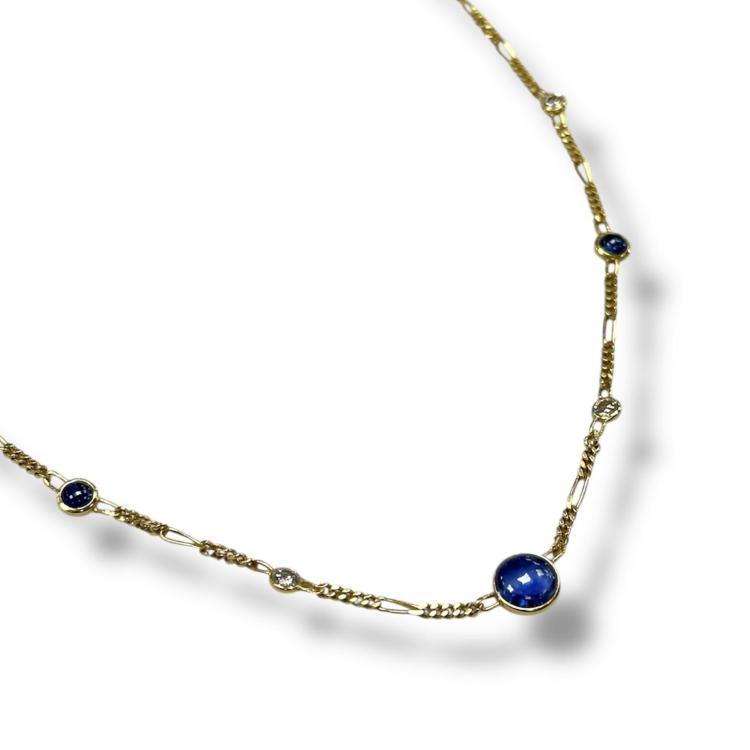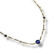 Collier or jaune 18ct avec diamants et pierre bleu