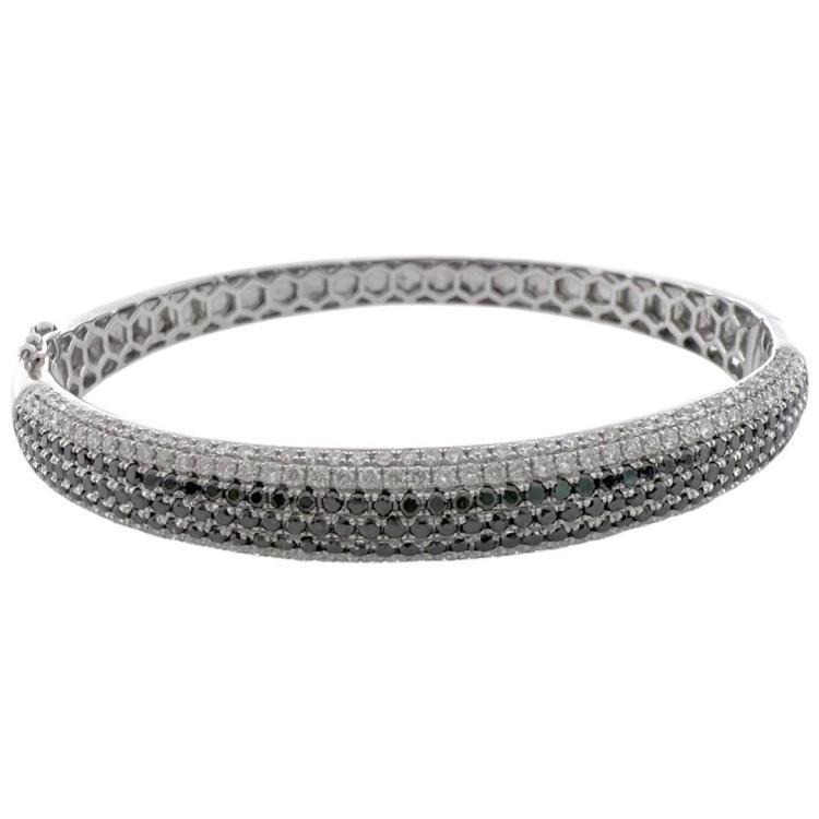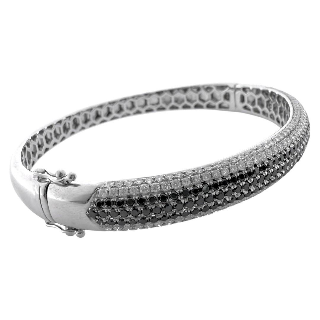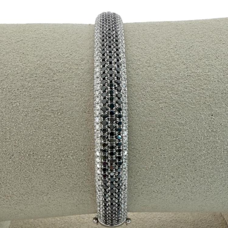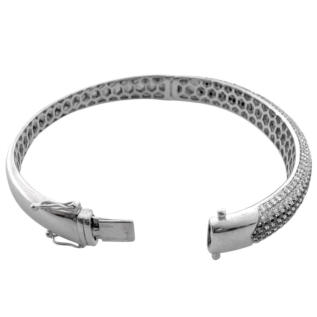 Référence Bracelet Jonc Or Blanc 18Ct & Diamants Blancs et Noirs