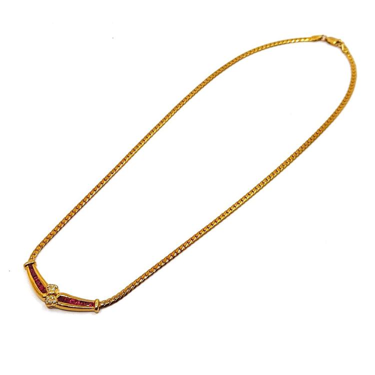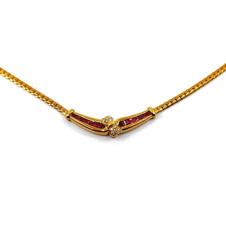 Collier en Or Jaune 18k Rubis & Diamants