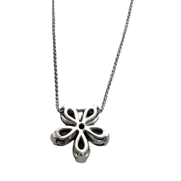Référence Collier Or 18Ct Fleur Amethyste & Brillant