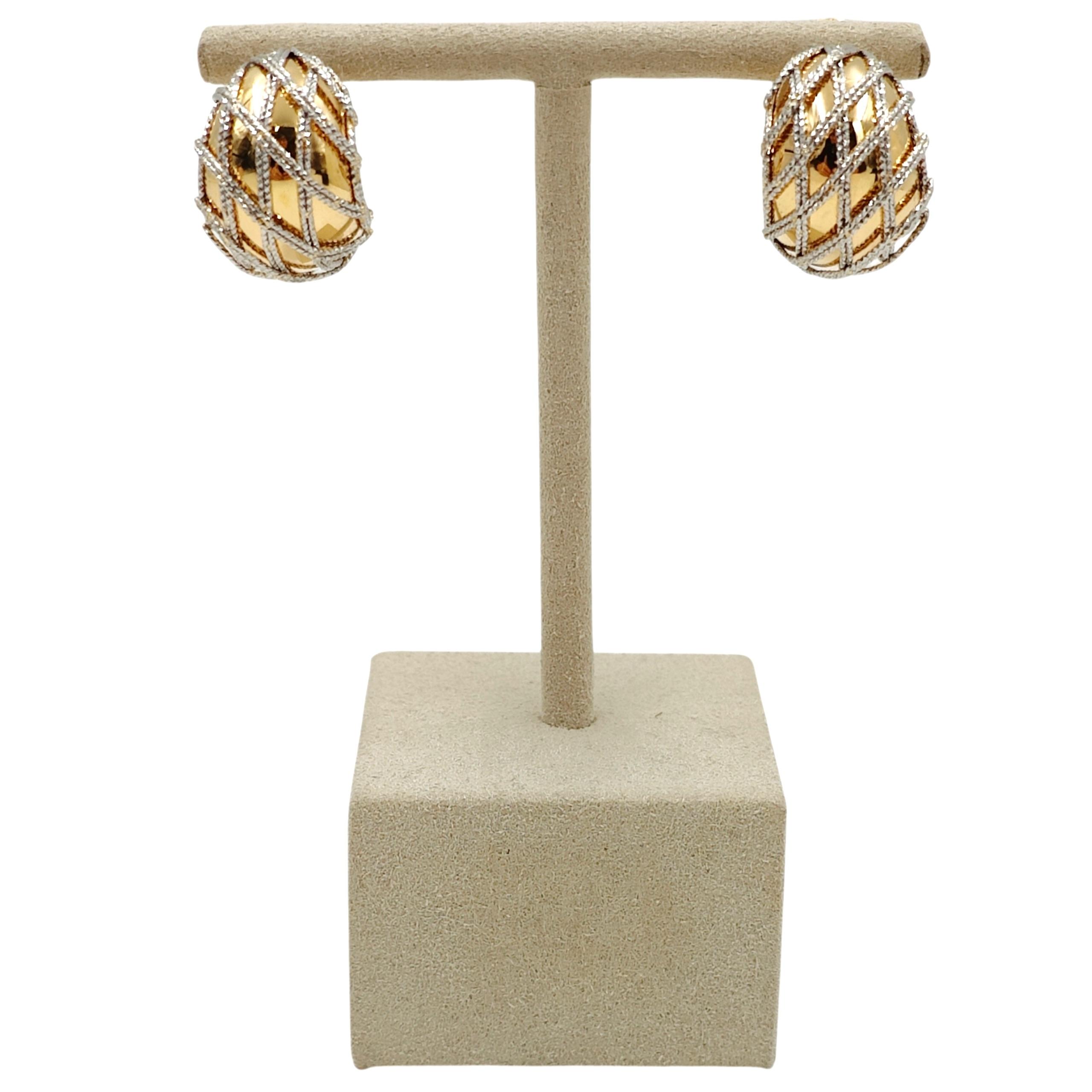 Boucles d'Oreilles Or Jaune&Blanc 14 Ct