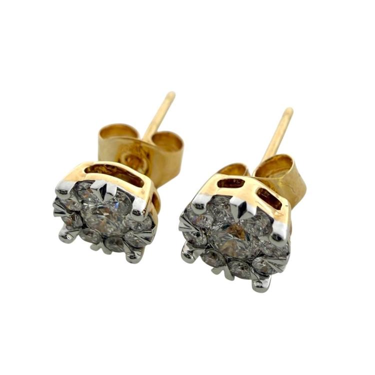 Boucles D'Oreilles Or Jaune 18ct & Diamants