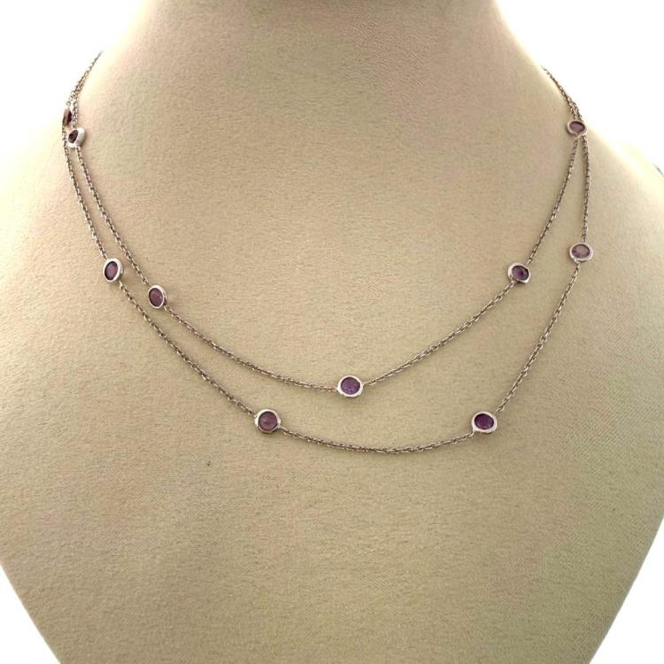 Collier Or Blanc 18ct & Améthystes