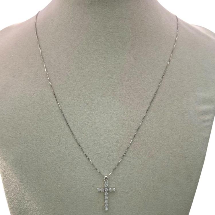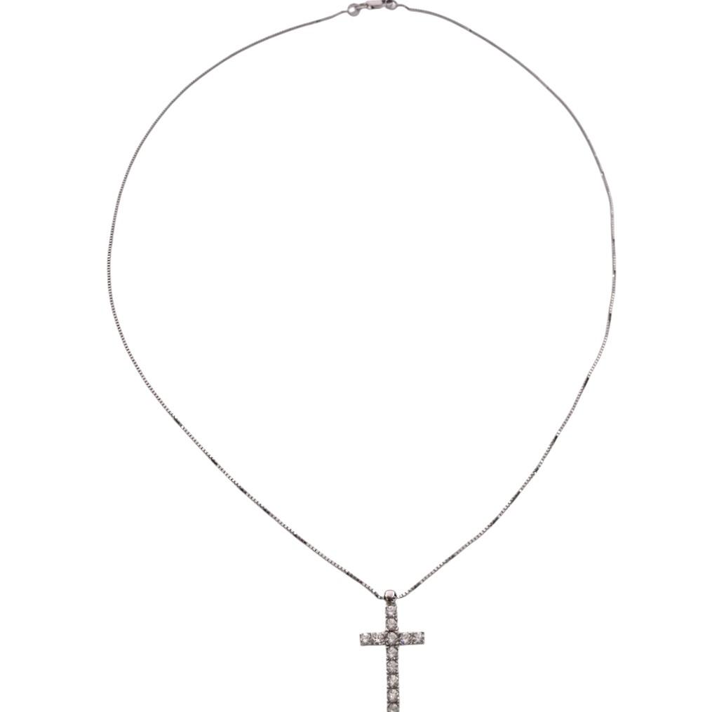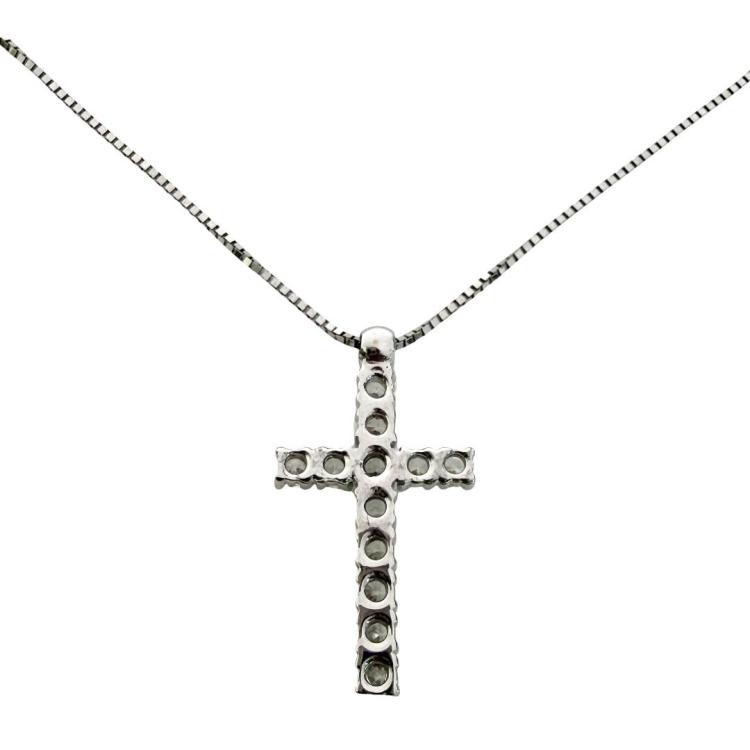 Référence Collier & Pendentif Croix Zircon & Or Blanc 18ct