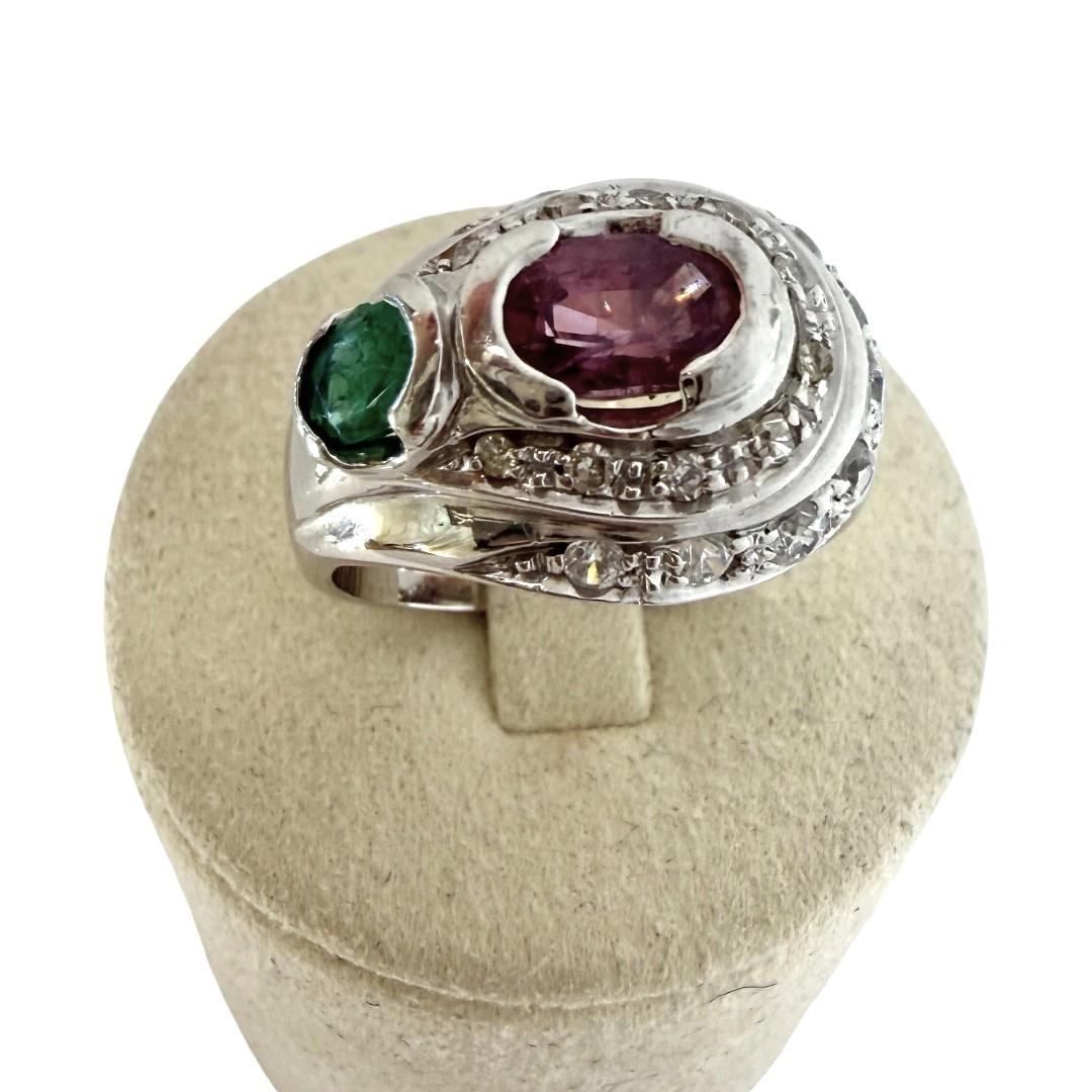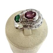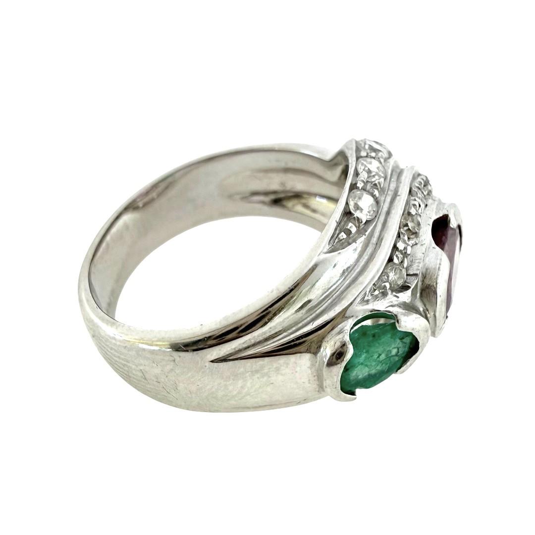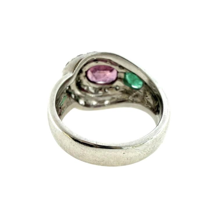 Bague Or Blanc 18ct Diamants & Emeraudes