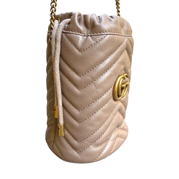 Sac Gucci Seau GG Marmont Petit Format Cuir Taupe