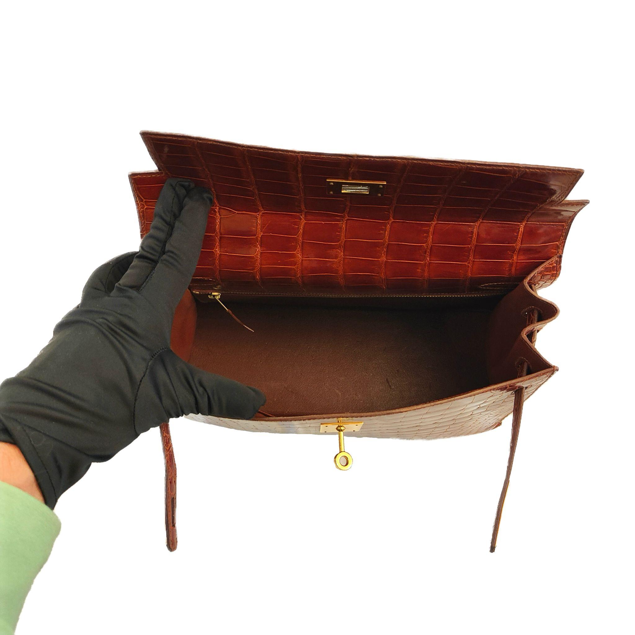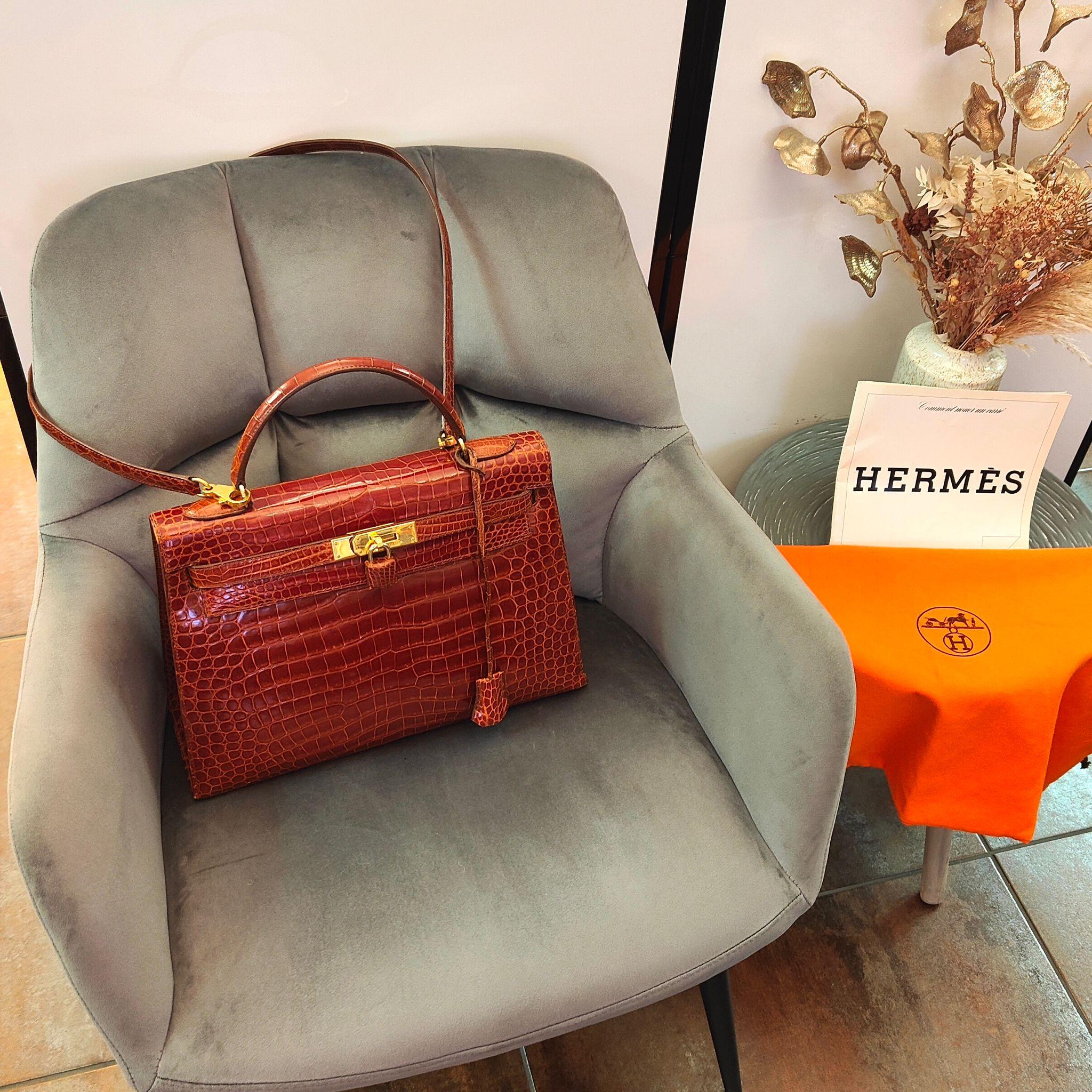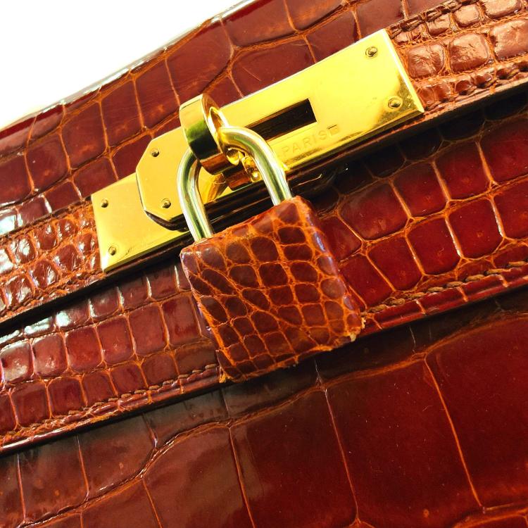 Sac à main Hermès 32 Crocodile Cognac